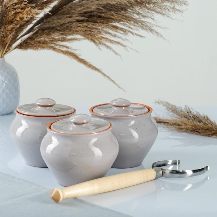 Набор "Вятская керамика Трио" 0,7лх3шт + ухват, серый