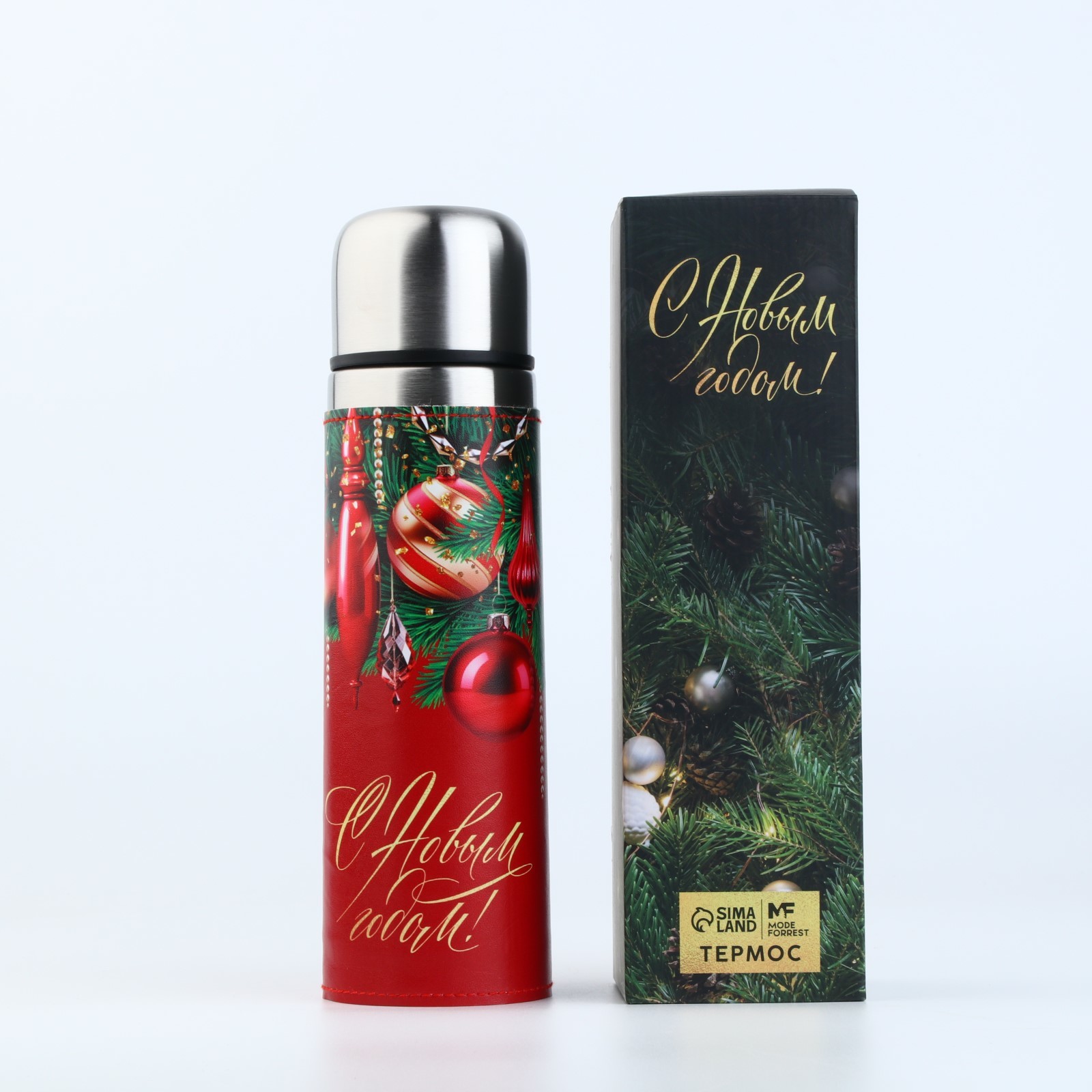 Стильный дизайн: термос оформлен в современном стиле с новогодним настроением.
